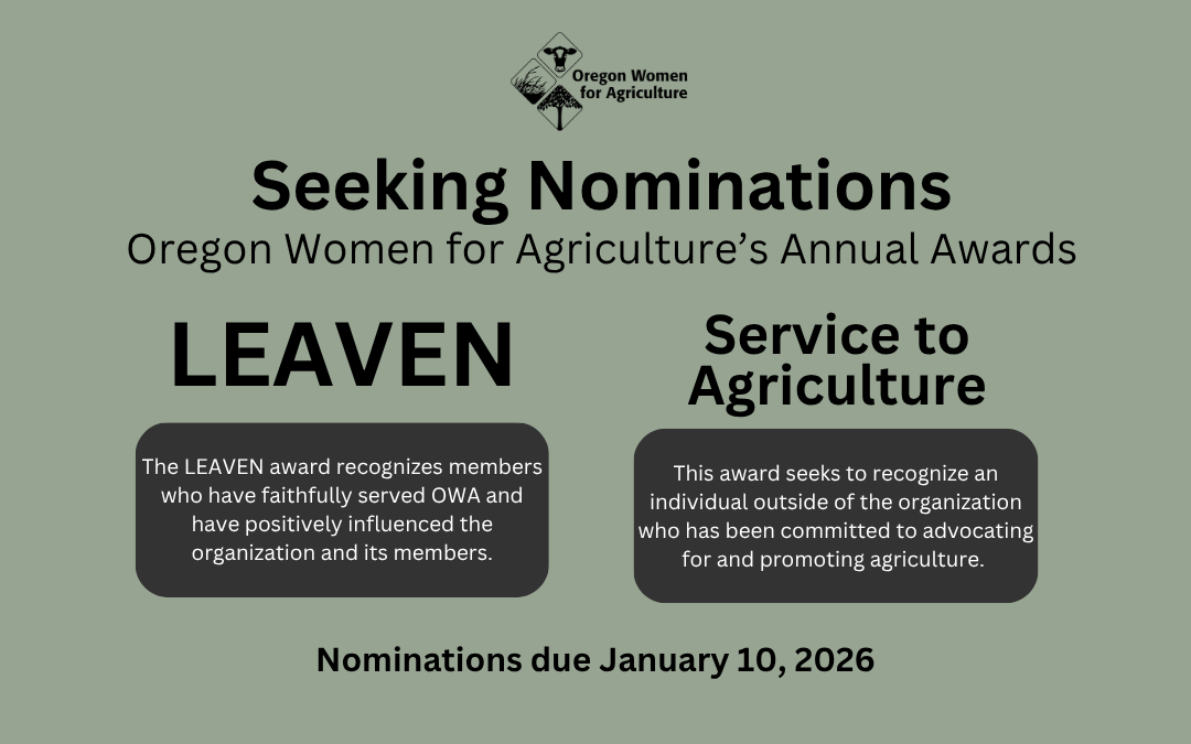 Help us honor those who make a lasting impact on agriculture and OWA. Submit your nominations today!